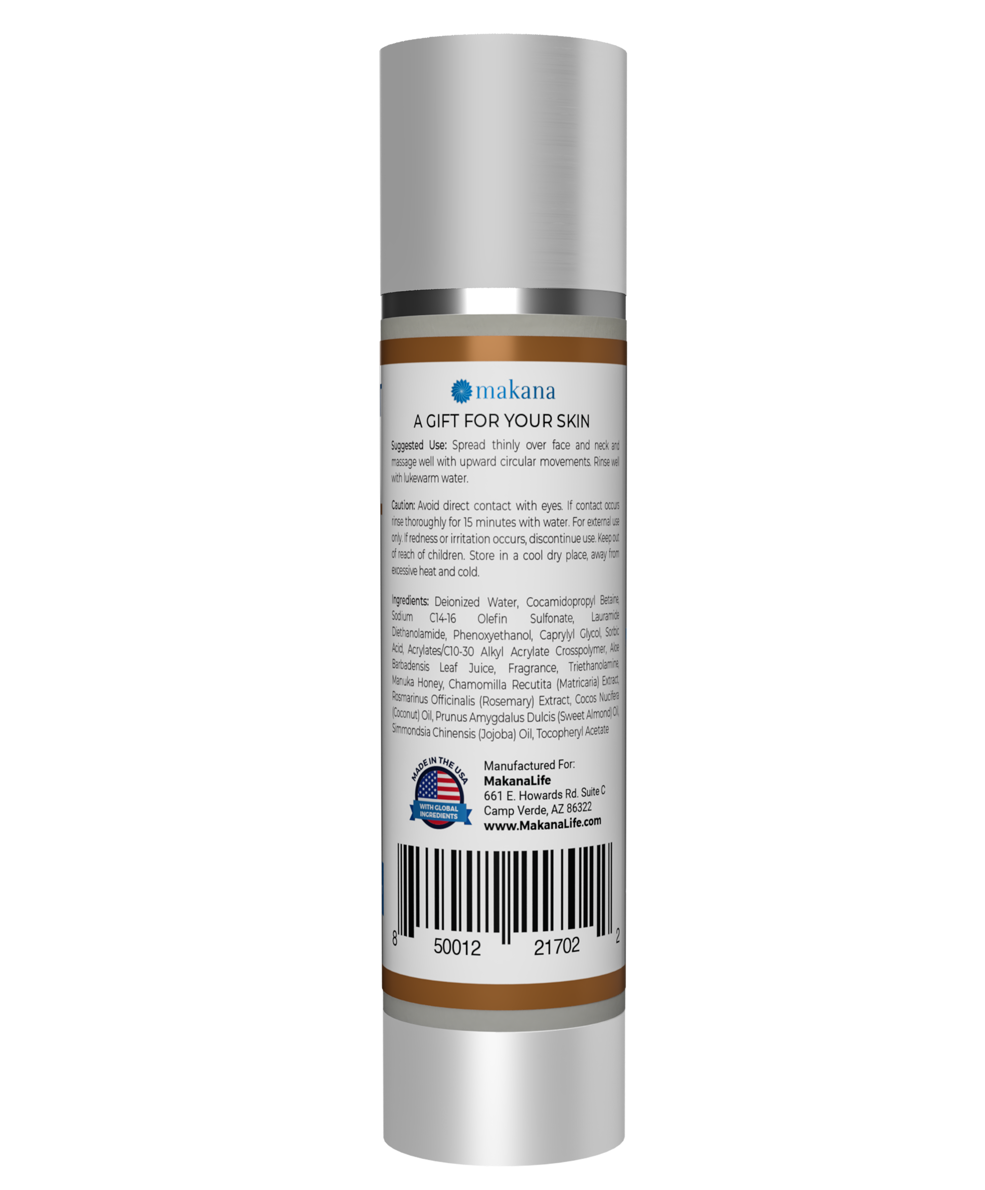 Experience the gentle touch of nature with Makana Coconut & Honey Aloe Facial Cleanser, a soothing blend of aloe vera, coconut milk, and honey designed to cleanse and refresh your skin. This nourishing formula creates a soft, luxurious lather that removes impurities while helping to maintain skin’s natural moisture. With its lightweight, foaming texture, this cleanser offers a refreshing and hydrating cleanse, perfect for daily skincare. The perfect addition to your skincare routine.